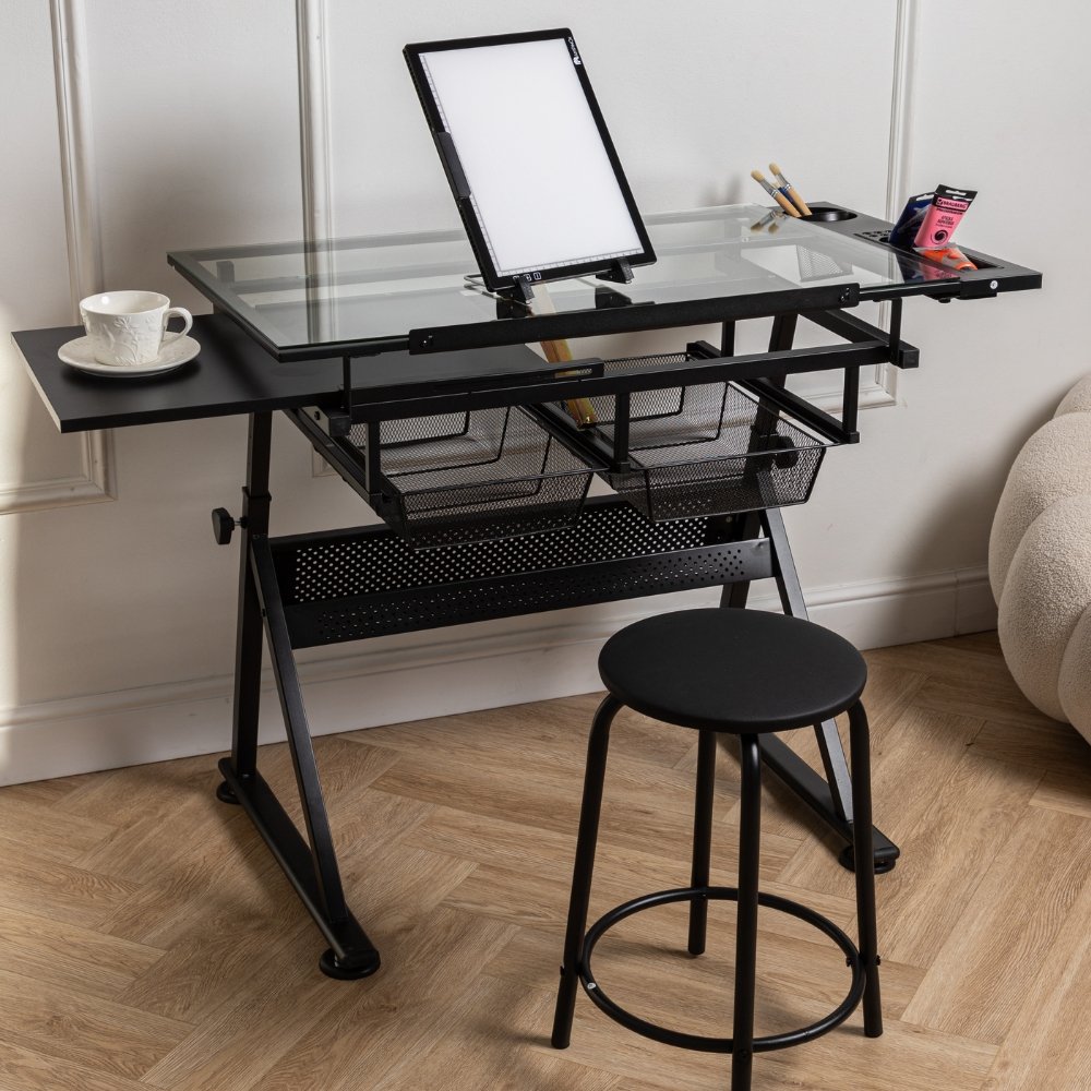 Рабочий стол со стеклянной регулируемой столешницей предназначен специально для выполнения чертежных и художественных работ.