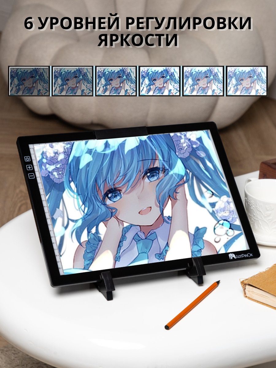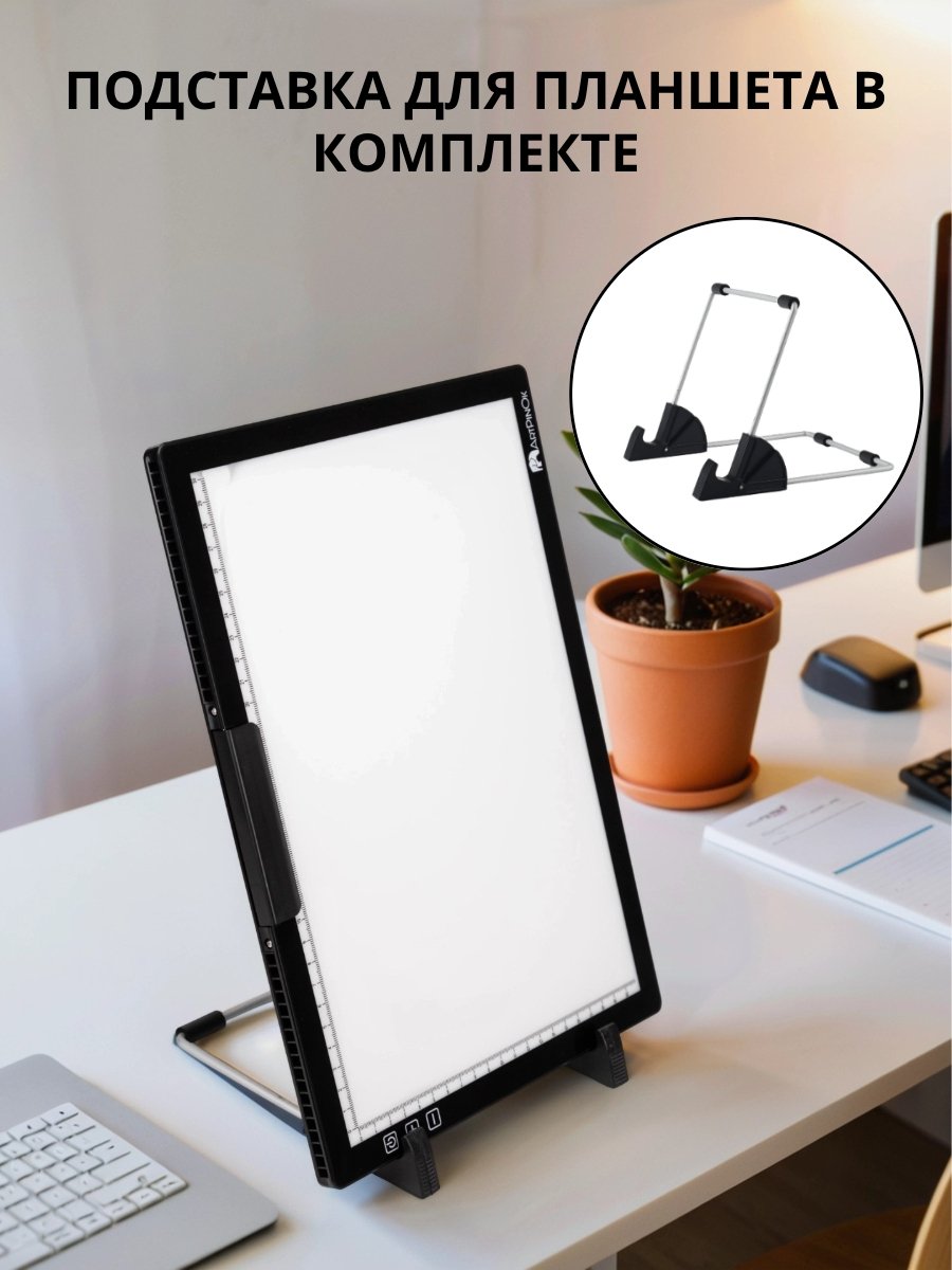 - Идеальная подсветка: Регулируемая яркость и функция запоминания последнего режима позволяют настроить комфорт под любой эскиз и плотность бумаги.